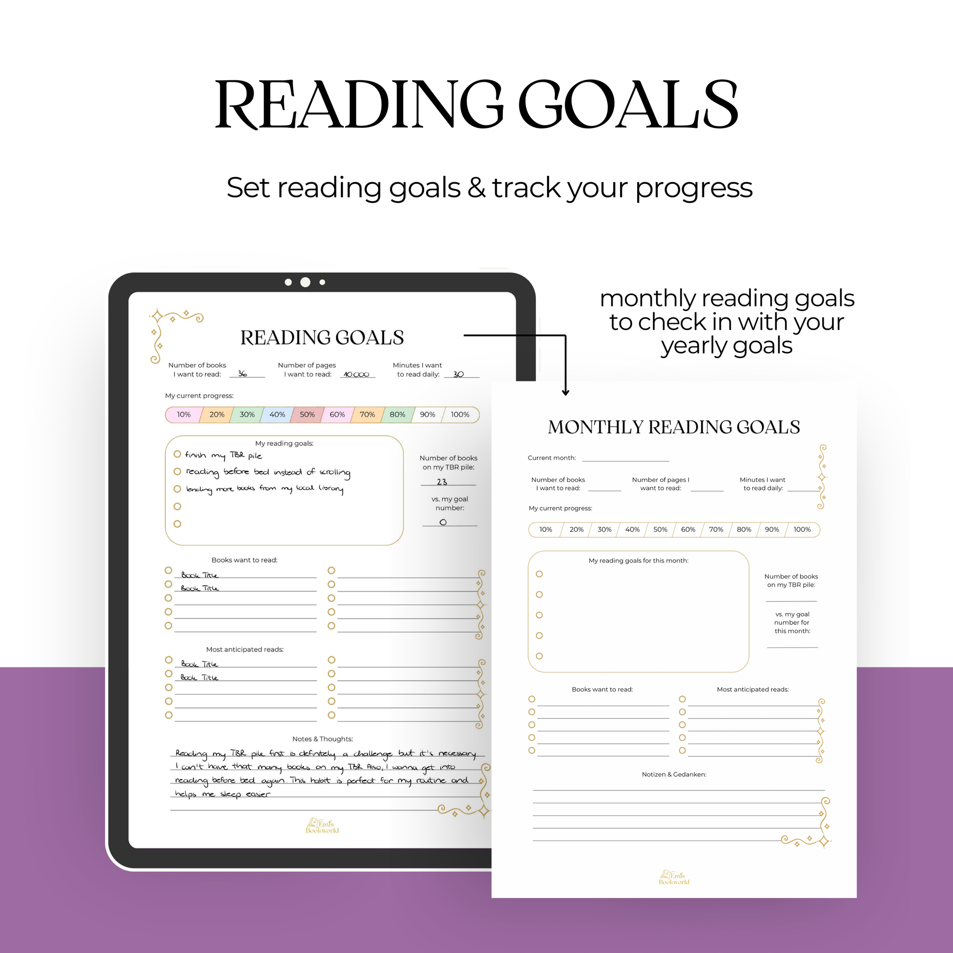 Dieses Set ist für alle Leser gedacht, die ihren Lesefortschritt verfolgen möchten und Vorlagen benötigen, um ihr eigenes Lesetagebuch zu beginnen!